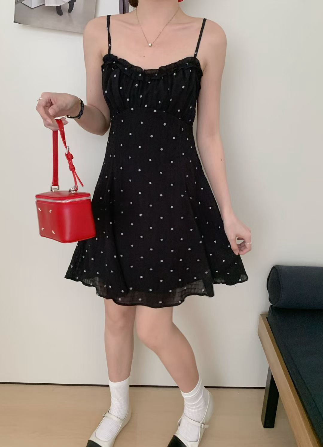Look 2 刺繡綁帶背心+小花花半身裙